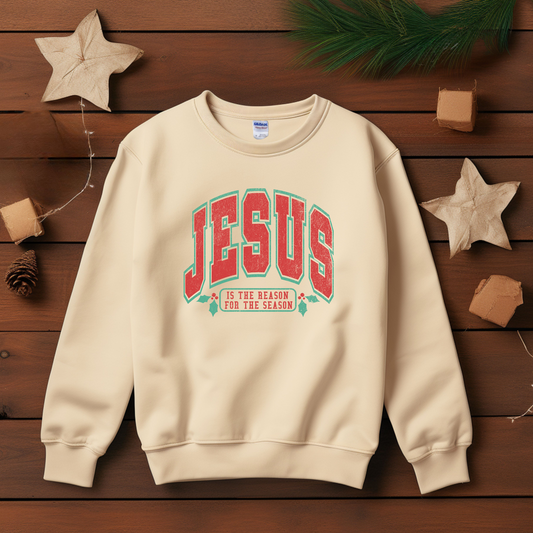 Jesus is the Reason for the Season Distressed Crewneck Sweatshirt